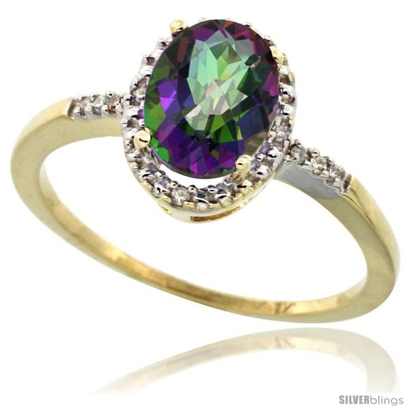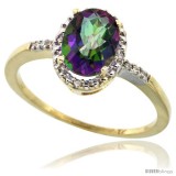 10k Yellow Gold Diamond Mystic Topaz Ring 1.17 ct Oval Stone 8x6 mm, 3/8 in wide
