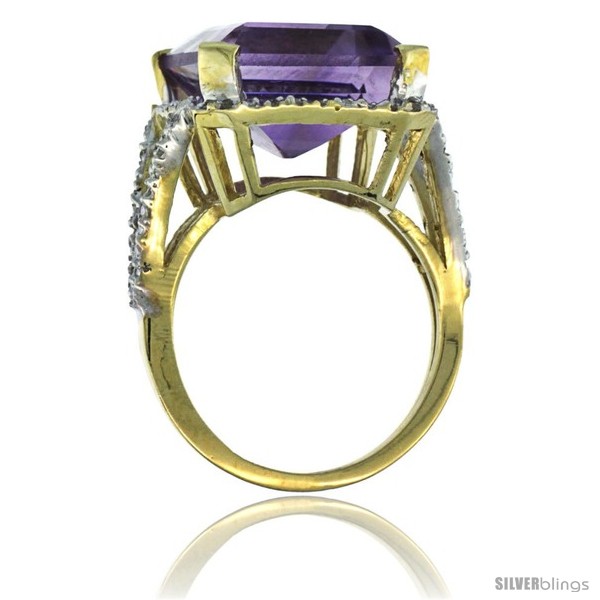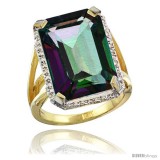 10k Yellow Gold Diamond Mystic Topaz Ring 14.96 ct Emerald shape 18x13 Stone 13/16 in wide