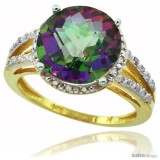 10k Yellow Gold Diamond Mystic Topaz Ring 5.25 ct Round Shape 11 mm, 1/2 in wide