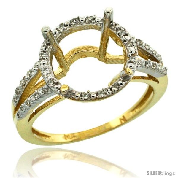 10k Gold Semi-Mount ( 11 mm ) Large Round Stone Ring w/ 0.107 Carat Brilliant Cut Diamonds, 1/2 in. (12.5mm) wide