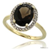10k Yellow Gold Diamond Halo Smoky Topaz Ring 2.4 carat Oval shape 10X8 mm, 1/2 in (12.5mm) wide