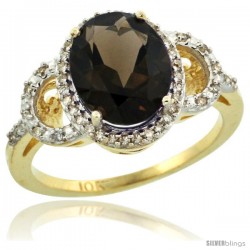 10k Yellow Gold Diamond Halo Smoky Topaz Ring 2.4 ct Oval Stone 10x8 mm, 1/2 in wide