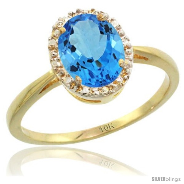 10k Yellow Gold Blue Topaz Diamond Halo Ring 1.17 Carat 8X6 mm Oval Shape, 1/2 in wide