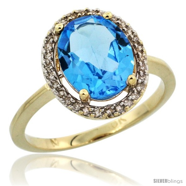 10k Yellow Gold Diamond Halo Blue Topaz Ring 2.4 carat Oval shape 10X8 mm, 1/2 in (12.5mm) wide
