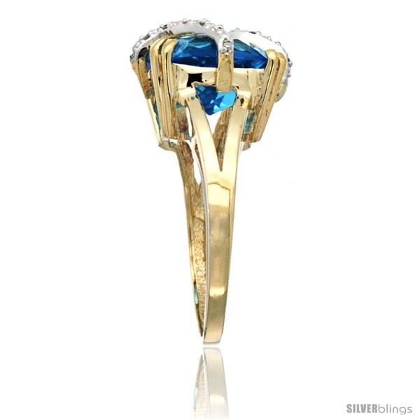 10k Yellow Gold Diamond Swiss Blue Topaz Ring 7.5 ct Cushion Cut 12 mm Stone, 1/2 in wide