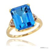 10k Yellow Gold Ladies Natural Swiss Blue Topaz Ring Emerald-shape 12x10 Stone