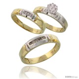 10k Yellow Gold Diamond Trio Engagement Wedding Ring 3-piece Set for Him & Her 4.5 mm & 4 mm wide 0.10 cttw -Style Ljy023w3