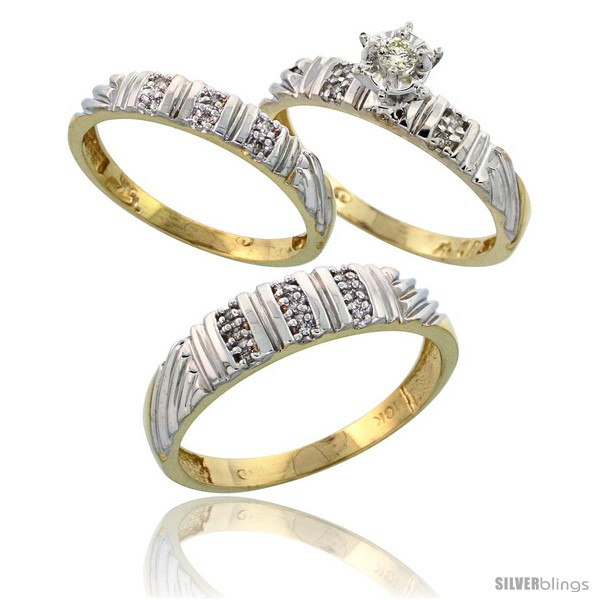 10k Yellow Gold Diamond Trio Wedding Ring Set His 5mm & Hers 3.5mm -Style Ljy117w3