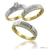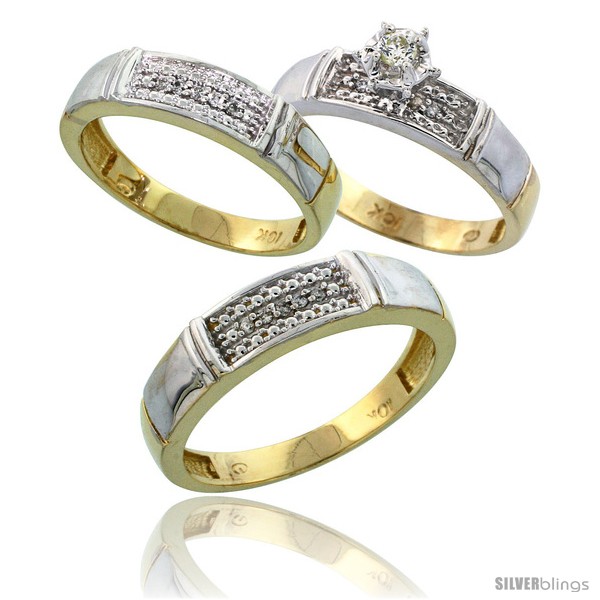 10k Yellow Gold Diamond Trio Wedding Ring Set His 5mm & Hers 4.5mm -Style Ljy107w3