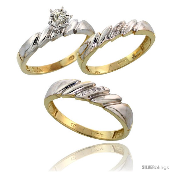 10k Yellow Gold Diamond Trio Wedding Ring Set His 5mm & Hers 4mm -Style Ljy111w3