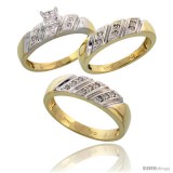 10k Yellow Gold Trio Engagement Wedding Rings Set for Him & Her 3-piece 6 mm & 5 mm wide 0.15 cttw Brilliant Cut