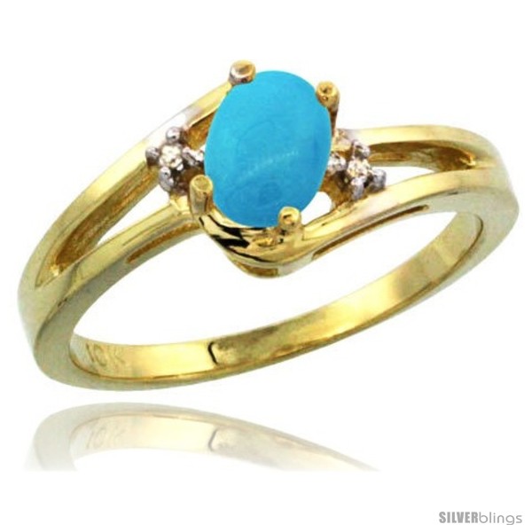 10k Yellow Gold Ladies Natural Turquoise Ring oval 6x4 Stone -Style Cy918165