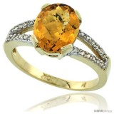 10k Yellow Gold and Diamond Halo whisky Quartz Ring 2.4 carat Oval shape 10X8 mm, 3/8 in (10mm) wide
