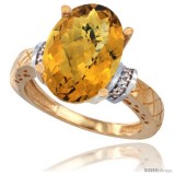 10k Yellow Gold Diamond Whisky Quartz Ring 5.5 ct Oval 14x10 Stone