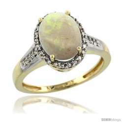 10k Yellow Gold and Diamond Halo Opal Ring 2.4 carat Oval shape 10X8 mm, 3/8 in (10mm) wide