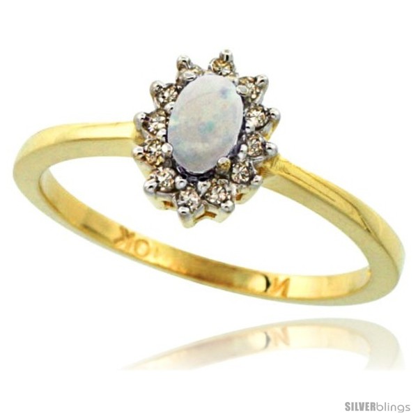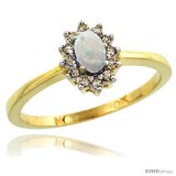 10k Yellow Gold Diamond Halo Opal Ring 0.25 ct Oval Stone 5x3 mm, 5/16 in wide