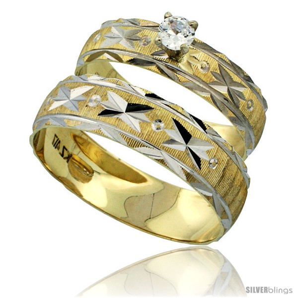 10k Gold 2-Piece 0.25 Carat White Sapphire Ring Set (Engagement Ring & Man's Wedding Band) Diamond-cut Pattern -Style 10y506em