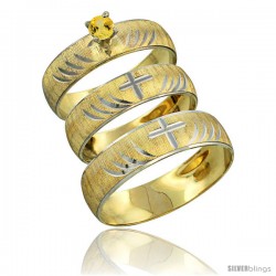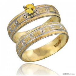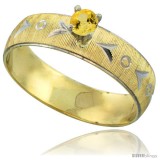 10k Gold Ladies' Solitaire 0.25 Carat Yellow Sapphire Engagement Ring Diamond-cut Pattern Rhodium Accent, 3/16 -Style 10y507er