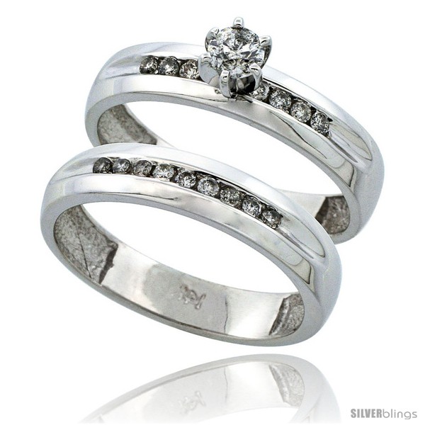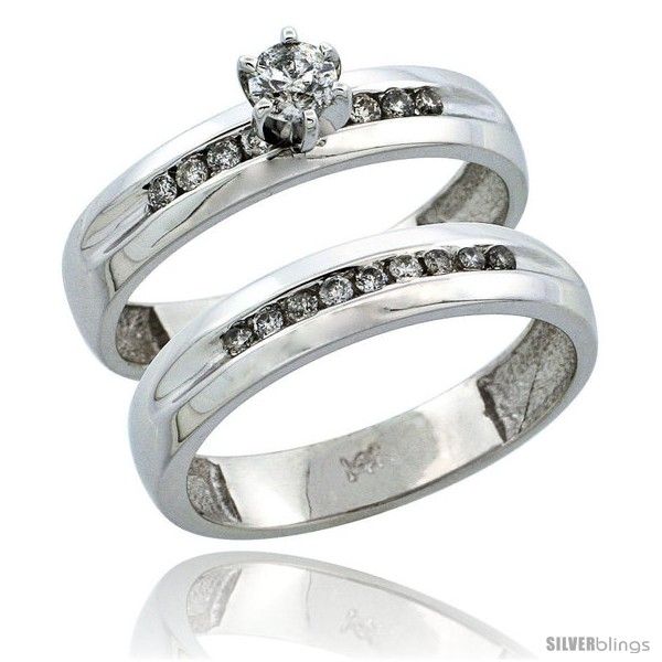 14k White Gold 2-Piece Diamond Engagement Ring Band Set w/ 0.37 Carat Brilliant Cut Diamonds, 5/32 in. (4mm) wide