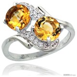 14k White Gold ( 7 mm ) Double Stone Engagement Citrine Ring w/ 0.05 Carat Brilliant Cut Diamonds & 2.34 Carats Round Stones