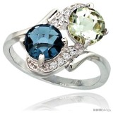 14k White Gold ( 7 mm ) Double Stone Engagement Green Amethyst & London Blue Topaz Ring w/ 0.05 Carat Brilliant Cut Diamonds