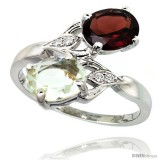 14k White Gold ( 8x6 mm ) Double Stone Engagement Green Amethyst & Garnet Ring w/ 0.04 Carat Brilliant Cut Diamonds & 2.34