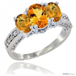 14k White Gold Ladies Oval Natural Citrine 3-Stone Ring with Whisky Quartz Sides Diamond Accent