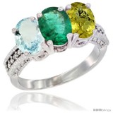14K White Gold Natural Aquamarine, Emerald & Lemon Quartz Ring 3-Stone Oval 7x5 mm Diamond Accent