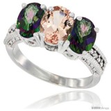 14K White Gold Natural Morganite & Mystic Topaz Ring 3-Stone 7x5 mm Oval Diamond Accent