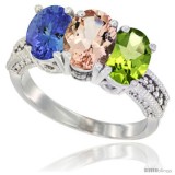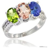 14K White Gold Natural Peridot, Morganite & Tanzanite Ring 3-Stone Oval 7x5 mm Diamond Accent