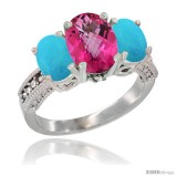 14K White Gold Ladies 3-Stone Oval Natural Pink Topaz Ring with Turquoise Sides Diamond Accent