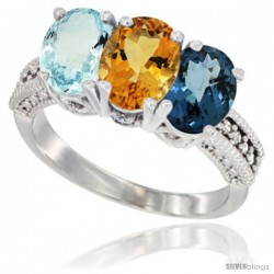 14k White Gold 3-Stone London Blue Topaz Rings -