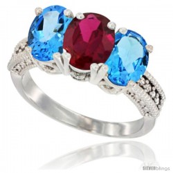 14k White Gold 3-Stone Swiss Blue Topaz Rings -