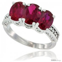 14k White Gold 3-Stone Ruby Rings -