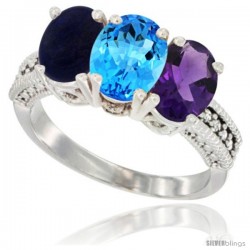 14k White Gold 3-Stone Lapis Rings -