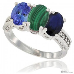14k White Gold 3-Stone Blue Sapphire Rings -