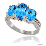 14K White Gold Ladies 3-Stone Oval Natural Swiss Blue Topaz Ring Diamond Accent