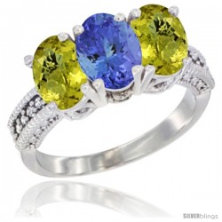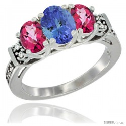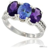 14K White Gold Natural Tanzanite & Amethyst Ring 3-Stone 7x5 mm Oval Diamond Accent