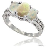 14k White Gold Ladies Oval Natural Opal 3-Stone Ring Diamond Accent