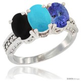 14K White Gold Natural Green Amethyst, Opal & Coral Ring 3-Stone 7x5 mm Oval Diamond Accent