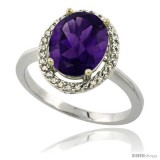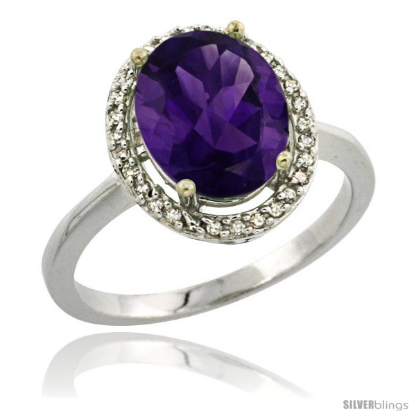 14k White Gold Diamond Amethyst Ring 2.4 ct Oval Stone 10x8 mm, 1/2 in wide -Style Cw401114