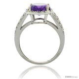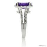 14k White Gold Diamond Halo Amethyst Ring 2.85 Carat Oval Shape 11X9 mm, 7/16 in (11mm) wide