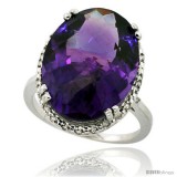 14k White Gold Diamond Halo Large Amethyst Ring 10.3 ct Oval Stone 18x13 mm, 3/4 in wide
