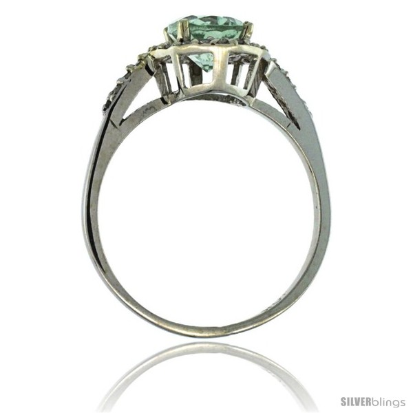 14k White Gold Diamond Aquamarine Ring Oval Stone 8x6 mm 1.17 ct 3/8 in wide