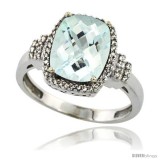 14k White Gold Diamond Halo Aquamarine Ring 2.4 ct Cushion Cut 9x7 mm, 1/2 in wide