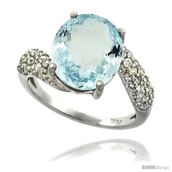 14k White Gold Natural Aquamarine Ring 12x10 mm Oval Shape Diamond Halo, 1/2inch wide