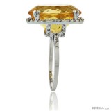 14k White Gold Diamond Halo Large Citrine Ring 10.3 ct Oval Stone 18x13 mm, 3/4 in wide