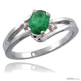 14k White Gold Ladies Natural Emerald Ring oval 6x4 Stone Diamond Accent -Style Cw415165