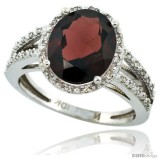 14k White Gold Diamond Halo Garnet Ring 2.85 Carat Oval Shape 11X9 mm, 7/16 in (11mm) wide