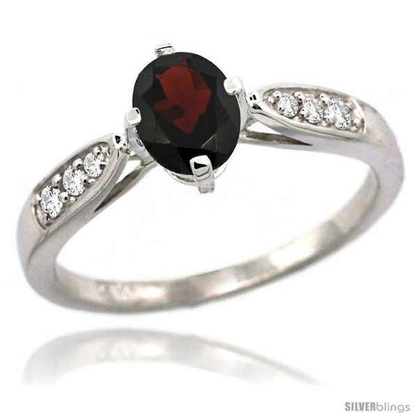 14k White Gold Natural Garnet Ring 7x5 Oval Shape Diamond Accent, 5/16inch wide